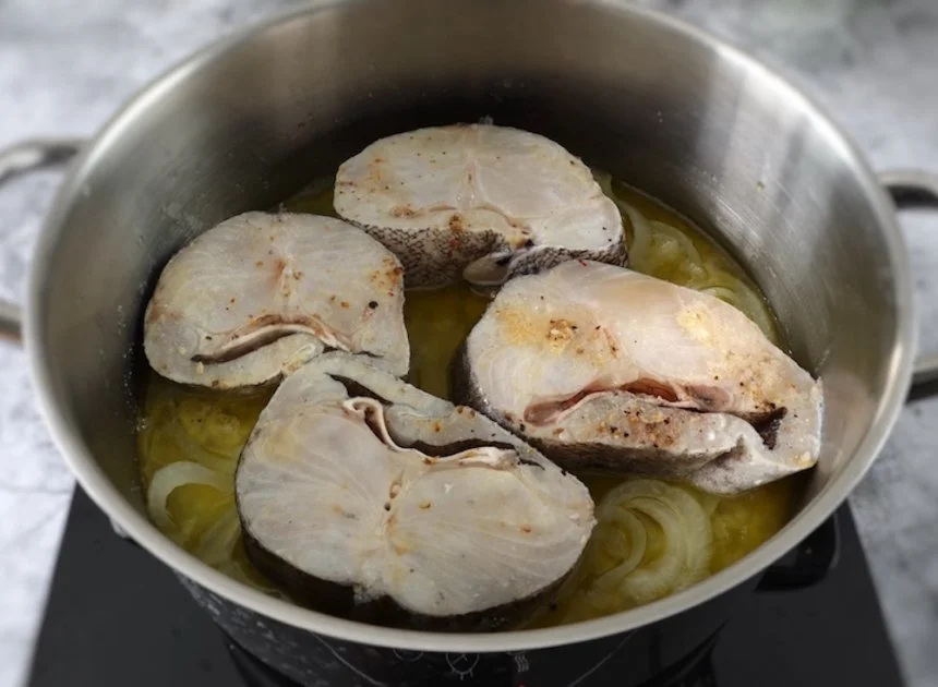 Como hacer Merluza con una cama de cebollas:Una receta muy simple, en la que apreciaremos el agradable sabor de una merluza fresca, y la dejaremos sobre una cama de cebollas cortadas en juliana y bien pochadas.
